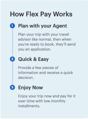 Budget-Friendly: Spread the cost of your trip over up to 24 months, with rates as low as $60 a month, making your dream vacation entirely attainable.